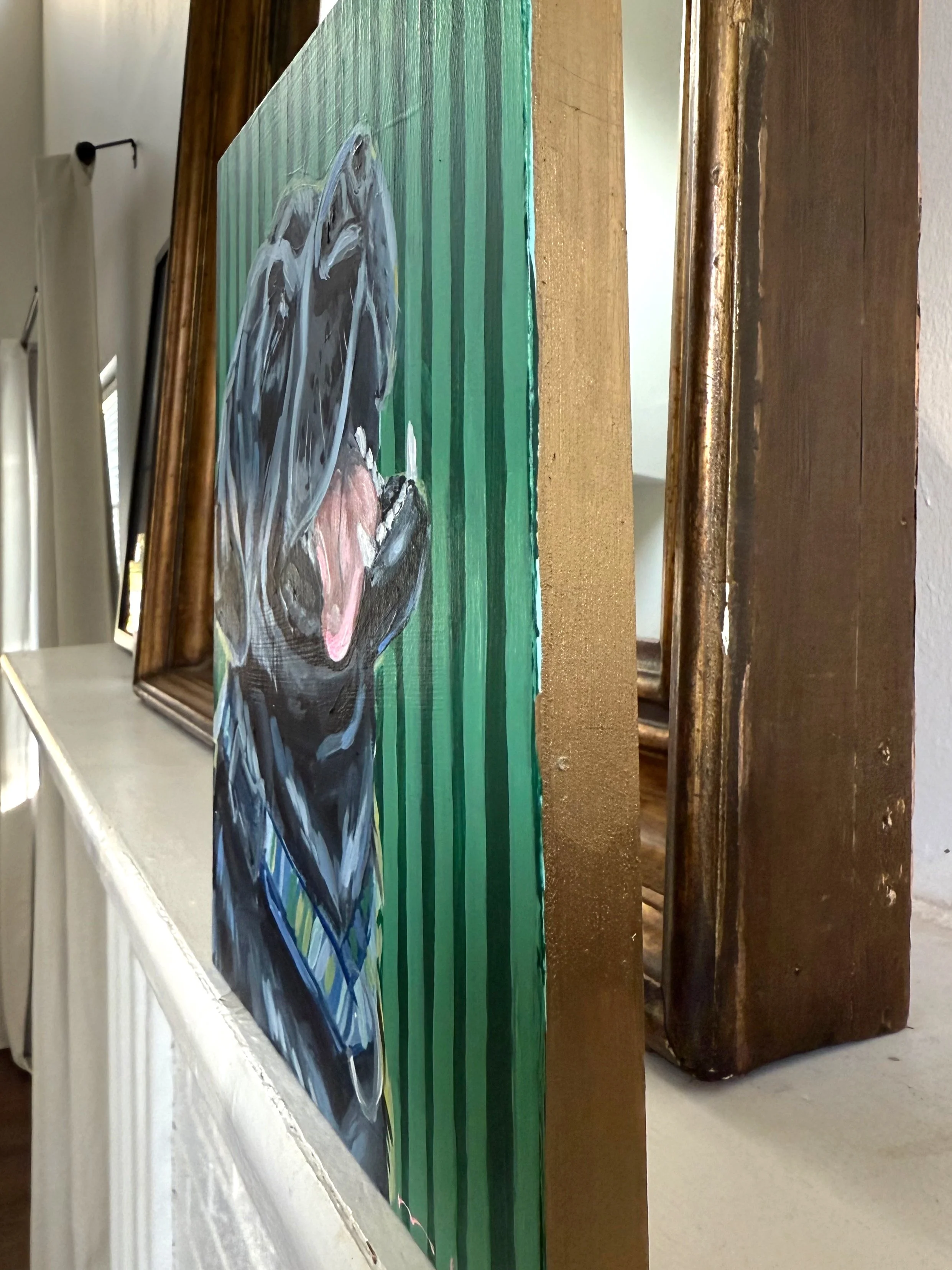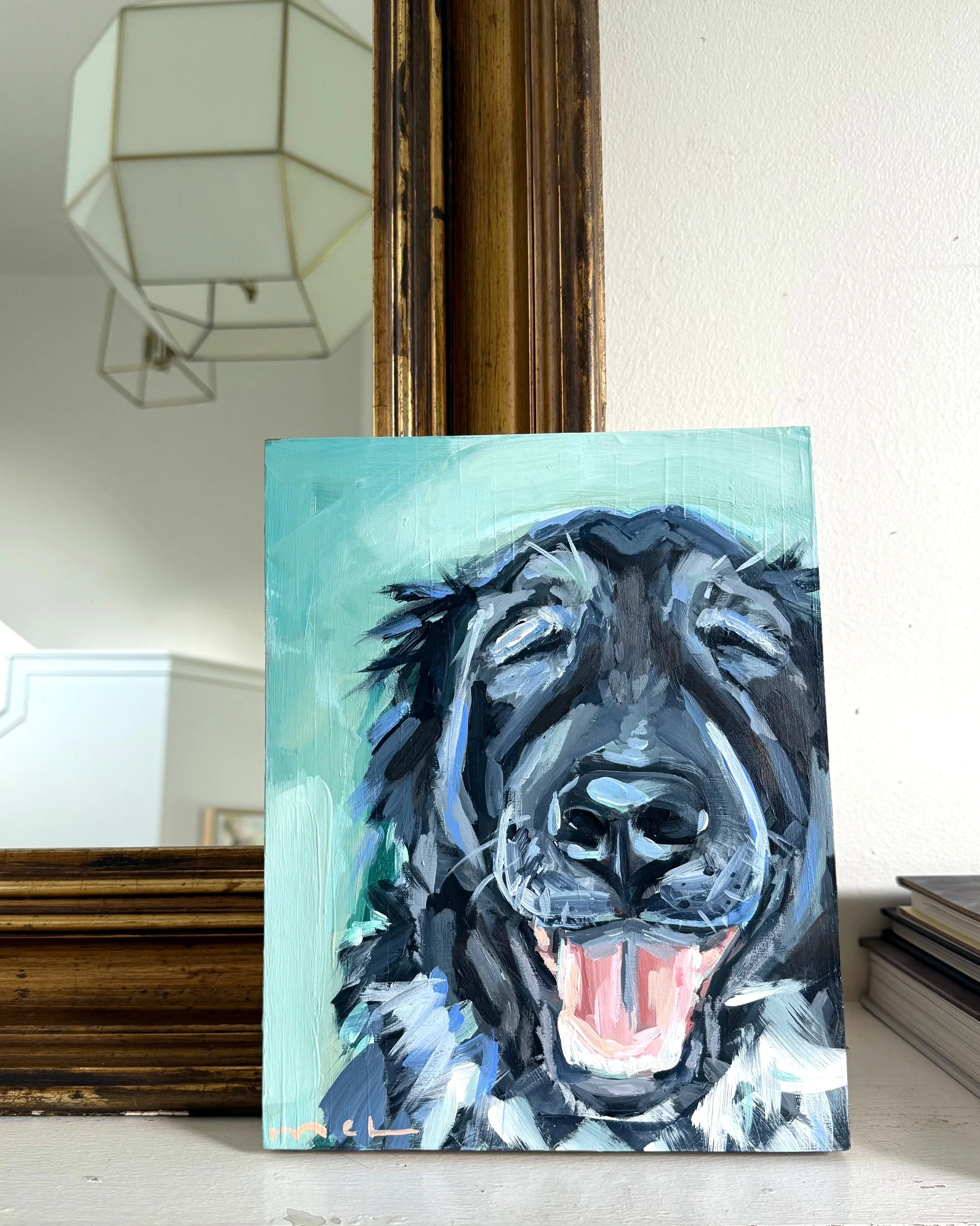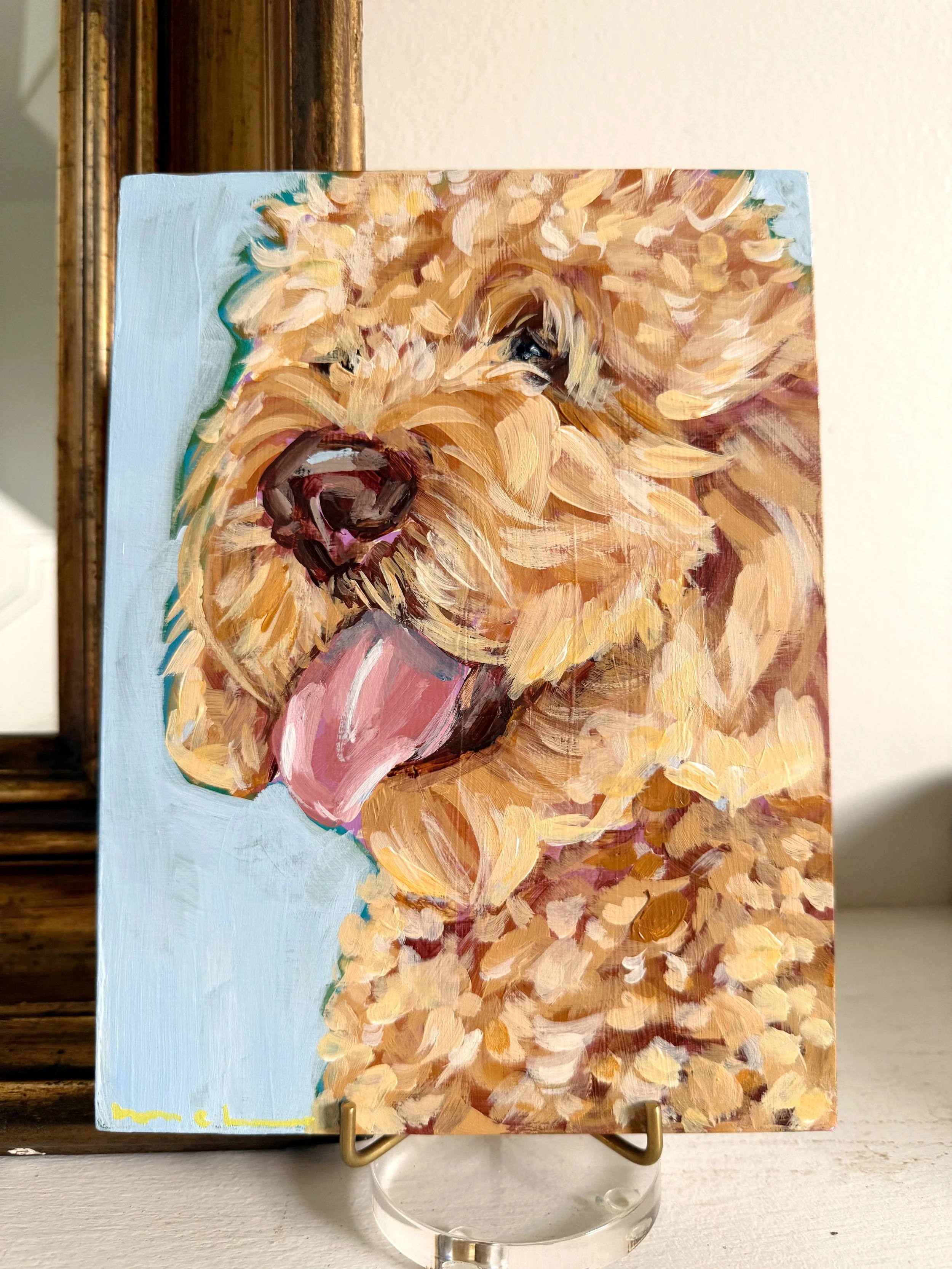 Semi-Custom portraits are one-of-a-kind, original art without the full custom price. They are customizable to suit your pet and ready to ship in 3-5 days. You can request background color changes, add a collar or tag, or include other small details to make the piece your own. Ideal for gifts, memorials, or just because!